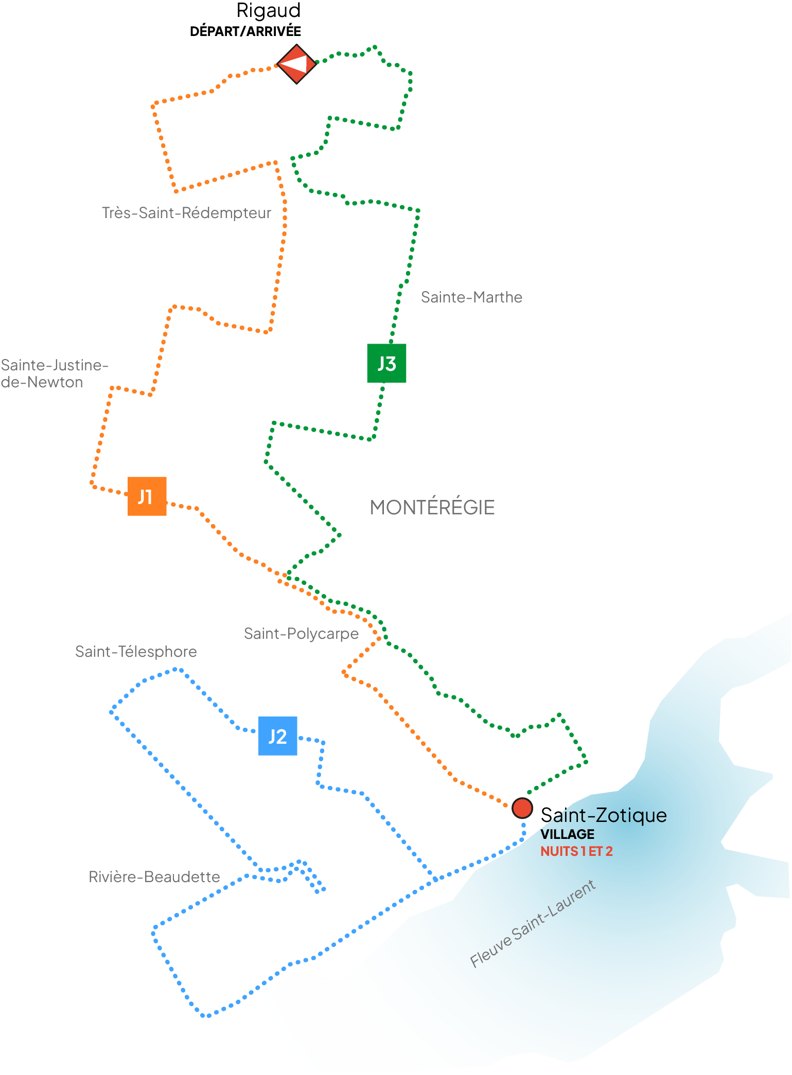 Site de départ : Mont Rigaud – 321 des Erables, Rigaud, QC J0P 1P0