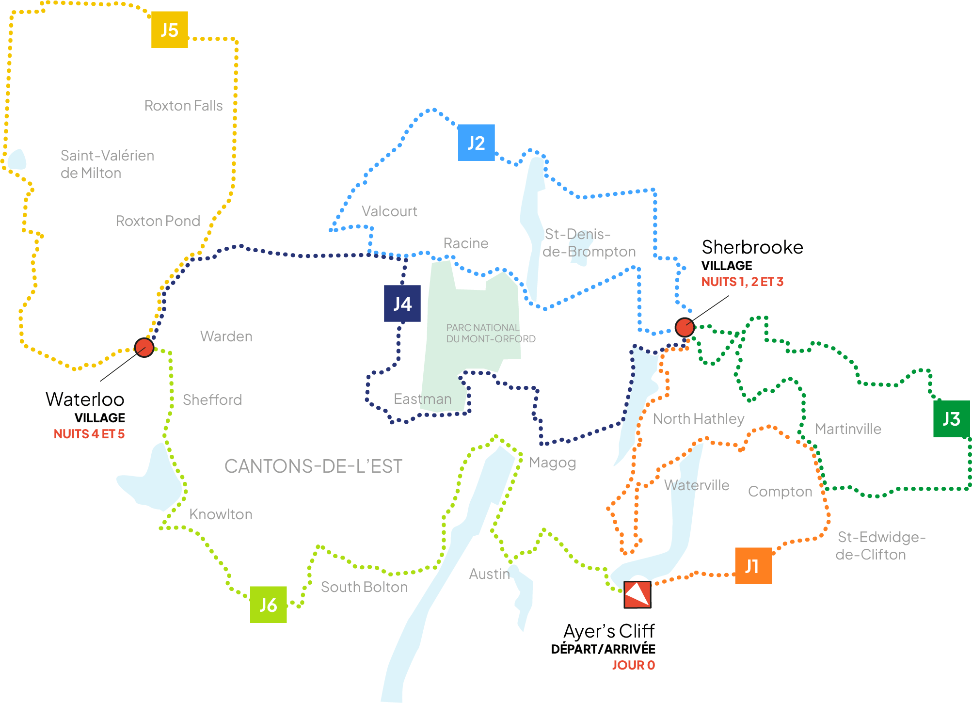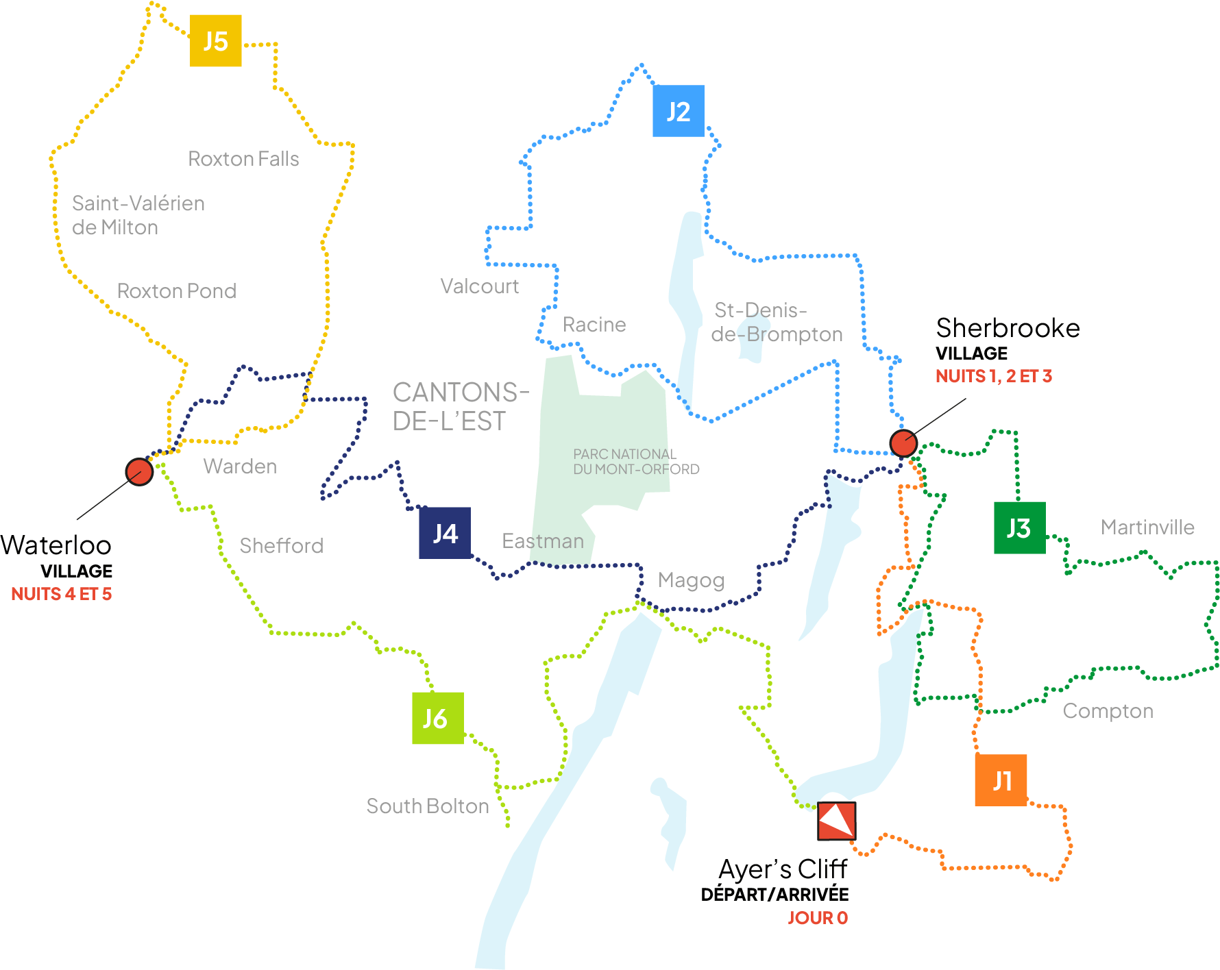 Jour 6 - Jeudi 6 août 2026 - De Waterloo à Ayer’s Cliff