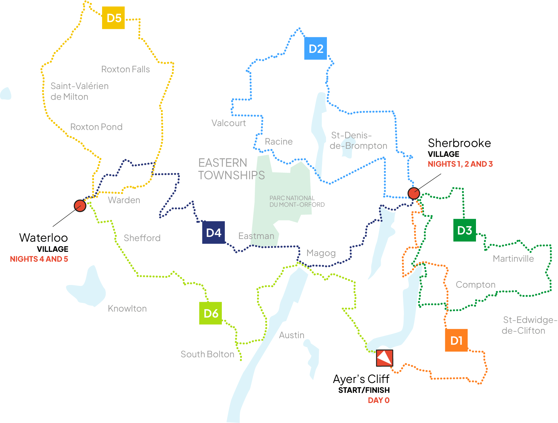 Finish line: Ayer’s Cliff Agricultural Fairgrounds – 1070 Westmount Street, Ayer’s Cliff, QC J0B 1C0
